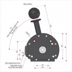 Lever 415 offers the possibility to set minimum and working speeds, clearly identified with detents. Intermediate working speeds are not allowed because a return spring pushes back to minimum the lever and consequently the engine speed goes back to minimum, as soon as the lever exits from the working position.